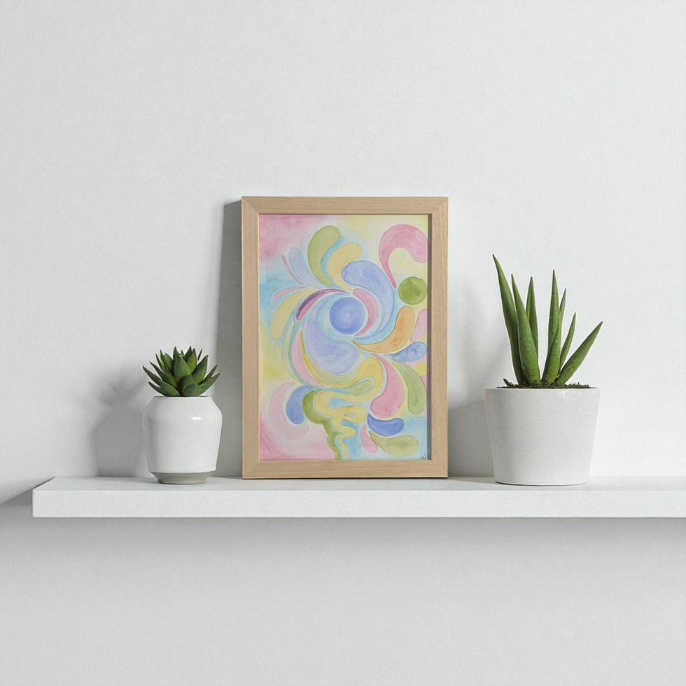 Les teintes pastel se frôlent sans jamais se heurter — un dialogue doux entre le rose du cœur et le bleu de l’esprit.