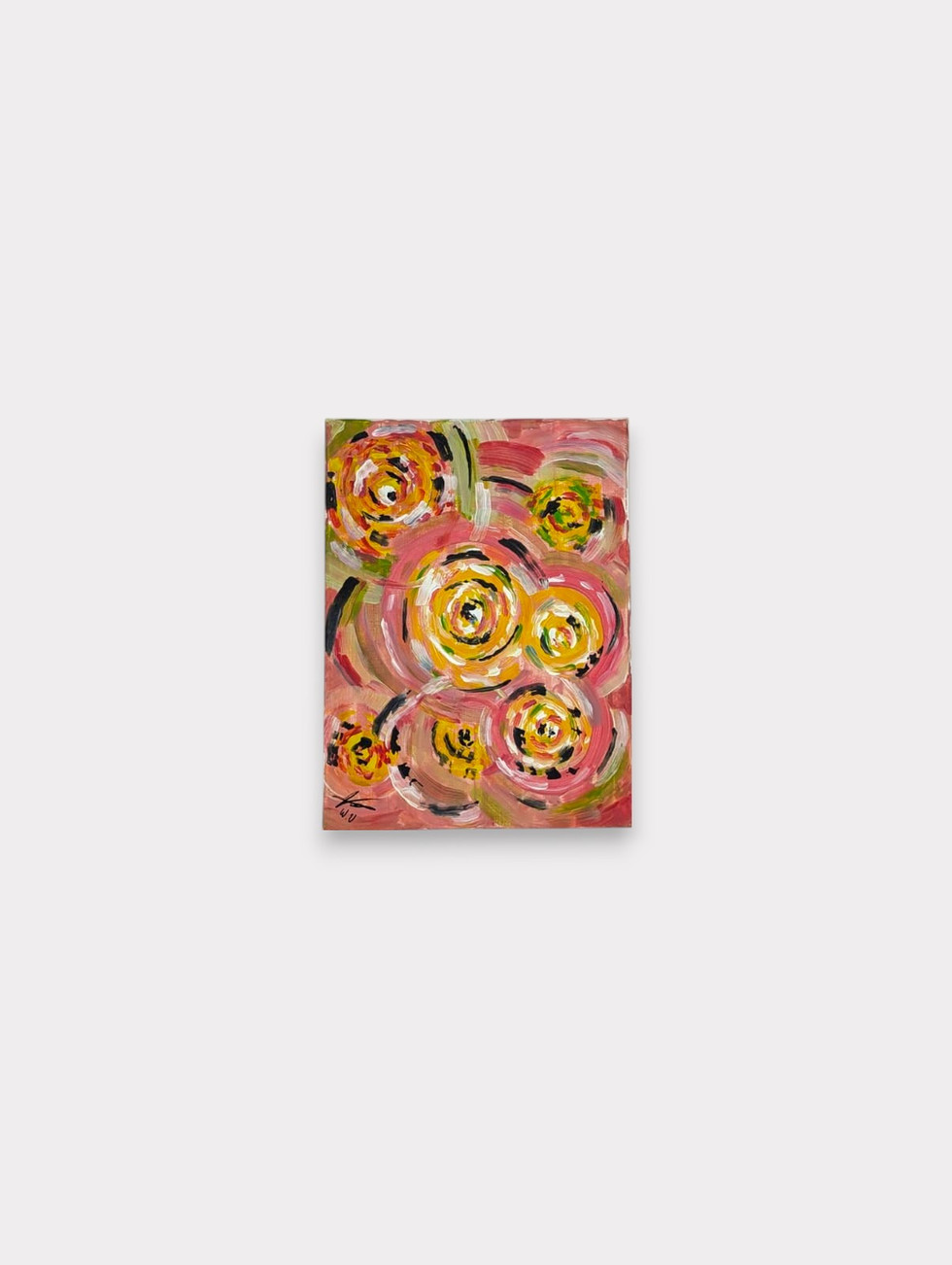 Ronde des Lumières est une peinture abstraite vibrante qui évoque la joie et la légèreté. Ses cercles aux teintes chaudes — jaune, orange, rose et rouge — semblent danser dans une composition dynamique et pleine de vie. L’énergie des coups de pinceau et la richesse des couleurs créent un tableau qui attire le regard et insuffle une atmosphère chaleureuse.